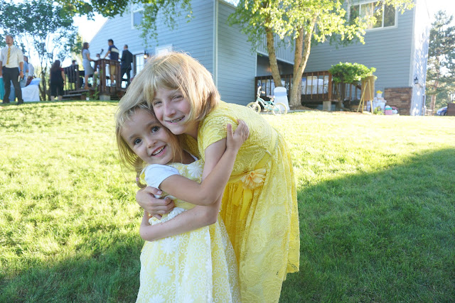 After the pictures at the temple, we drove out to the Larsens' house and then kept driving a little farther to the property of their neighbor's. We had set up tables and chairs in their yard plus tablecloths for the wedding luncheon. I had hired a caterer to serve us some Cafe Rio type salads which tasted good. Unfortunately the meal had something in it that made most of us sick about 12 hours later and caused us some gastrointestinal distress. Sadly, AnnaSue probably got the sickest. Fortunately most of us were better within a short time.