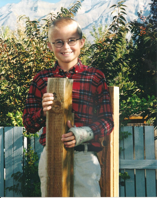 Age 9: Jan broke his arm playing kickball in the school cafeteria with shoes off and socks on. The school didn't want the students to wear shoes because of the black marks they would make on the floor but when Jan slipped and broke his arm, I complained about that policy.