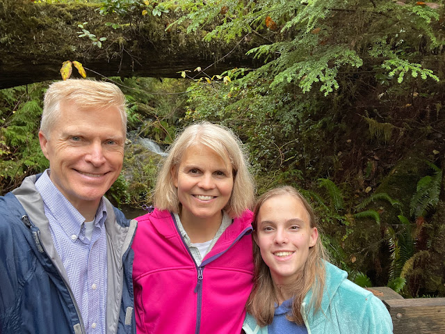 Fortunately it stopped raining shortly after we arrived and we headed out on the trails. The trails were not muddy. They were gentle trails--it felt easy to hike at sea level coming from our higher altitude.This temperate rain forest averages over 130 inches of rain per year. For comparison, where we live averages 16 inches of water per year. Their summers are fairly dry and then it rains a lot in the other seasons.